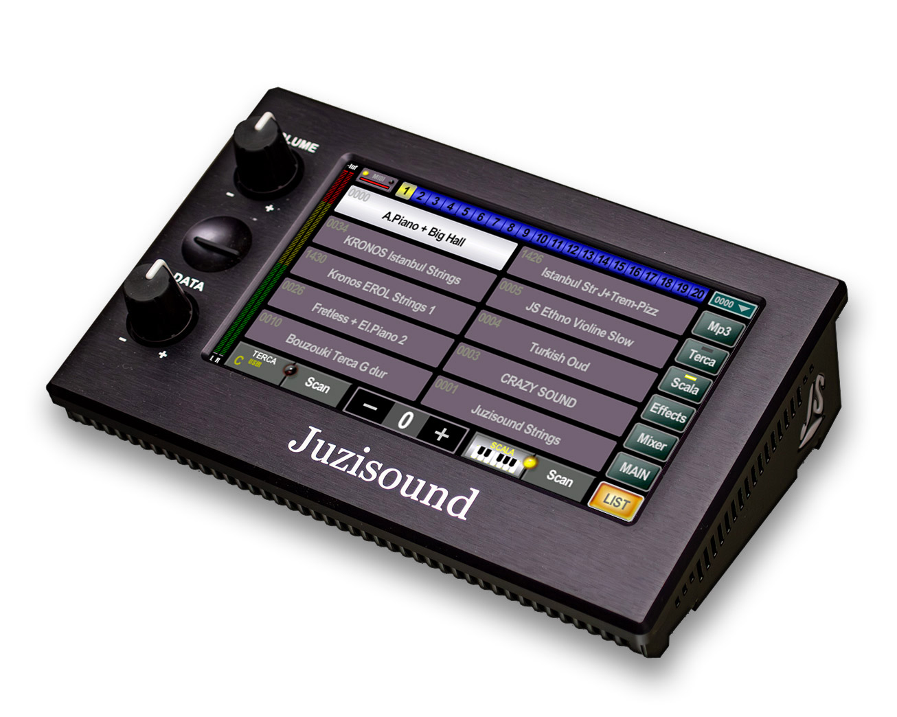 Noul sampler Juzisound, din nou specializat pentru redarea muzicii etno-balkanica. Pentru astfel de muzică, acest dispozitiv este într-adevăr cel potrivit pentru dvs.! Modelul 3 este succesorul Samplerului 2, dar tehnologia este mult mai avansată. Sampler 3 are 8 Uppere independente, citește samplere de pe cardul Micro SD cu viteza maximă posibilă, are funcție de reîmprospătare automată a cardului SD și are cel mai bun DAC pe 32 de biți din lume pentru o calitate audio perfectă. Același hardware este utilizat cu 2 versiuni de software independente: una pentru utilizarea cu orice sintetizator și a doua pentru utilizarea cu acordeoanele MIDI. Pentru mai multe informații, consultați specificațiile și tabelul de comparație între toate samplerele.