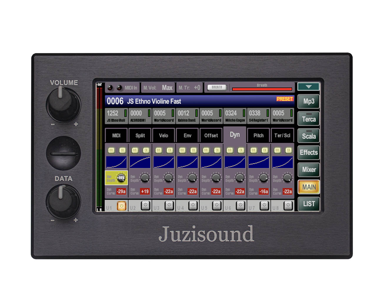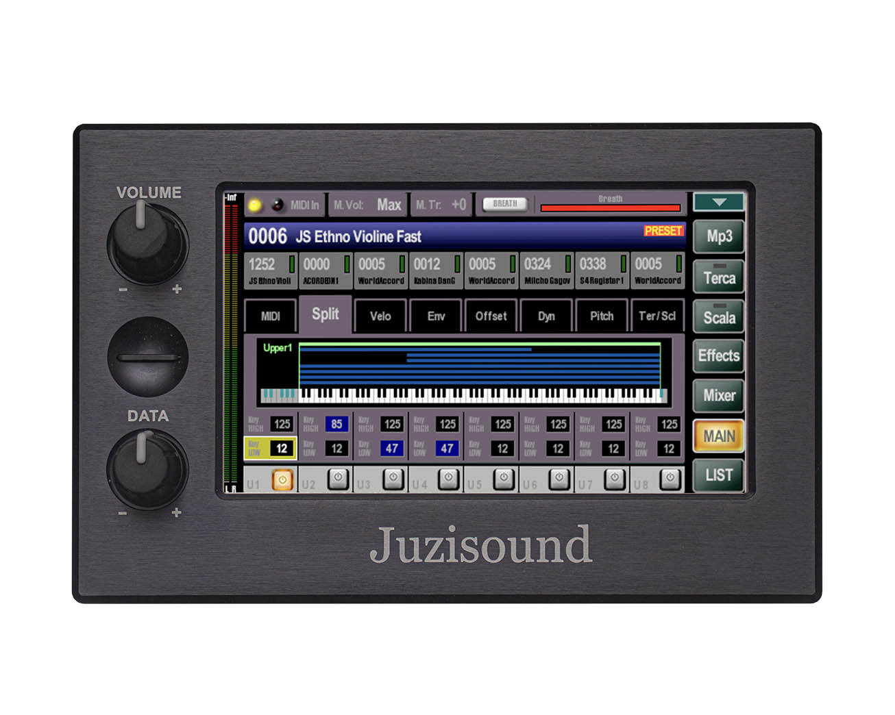 Hardware-ul Sampler 3 este creat pentru a fi cel mai puternic hardware de redare samplere de la Juzisound. Aceasta implementează o tehnologie foarte nouă și obține maxim de la această platformă hardware. Datorită experienței vaste pe care a acumulat-o de-a lungul anilor și modelelor anterioare, Juzisound ia decizia de a crea 2 versiuni software diferite, cu același hardware, deoarece cerințele utilizatorului atunci când cântă cu acordeoanele, Synth sau MIDI sunt foarte diferite. Când folosim controlerul MIDI sau sintetizatorul, avem nevoie doar de mai multe sunete suprapuse. În Juzisound, acesta este PRESET, egal cu COMBI în Korg. În schimb, atunci când folosești acordeonul MIDI, utilizatorul are nevoi foarte diferite. Acordeonul real are registre separate pentru a schimba partea SOLO și BASS, de asemenea, partea de bas este o combinație de 2 upere, bas și acorduri fundamentale, dar acest lucru este schimbat împreună din butoanele registrelor din partea stângă. În loc de toate acestea, software-ul pentru acordeon MIDI trebuie să aibă o organizare complet diferită, iar Juzisound creează un software complet nou, specializat pentru a respecta cerințele utilizatorilor de acordeon. Acestea includ controlul in timp real a majorității funcțiilor importante, direct de la sistemul MIDI pentru acordeon v2. Tot ce urmeaza va fi despre versiunea de synth a Sampler 3!